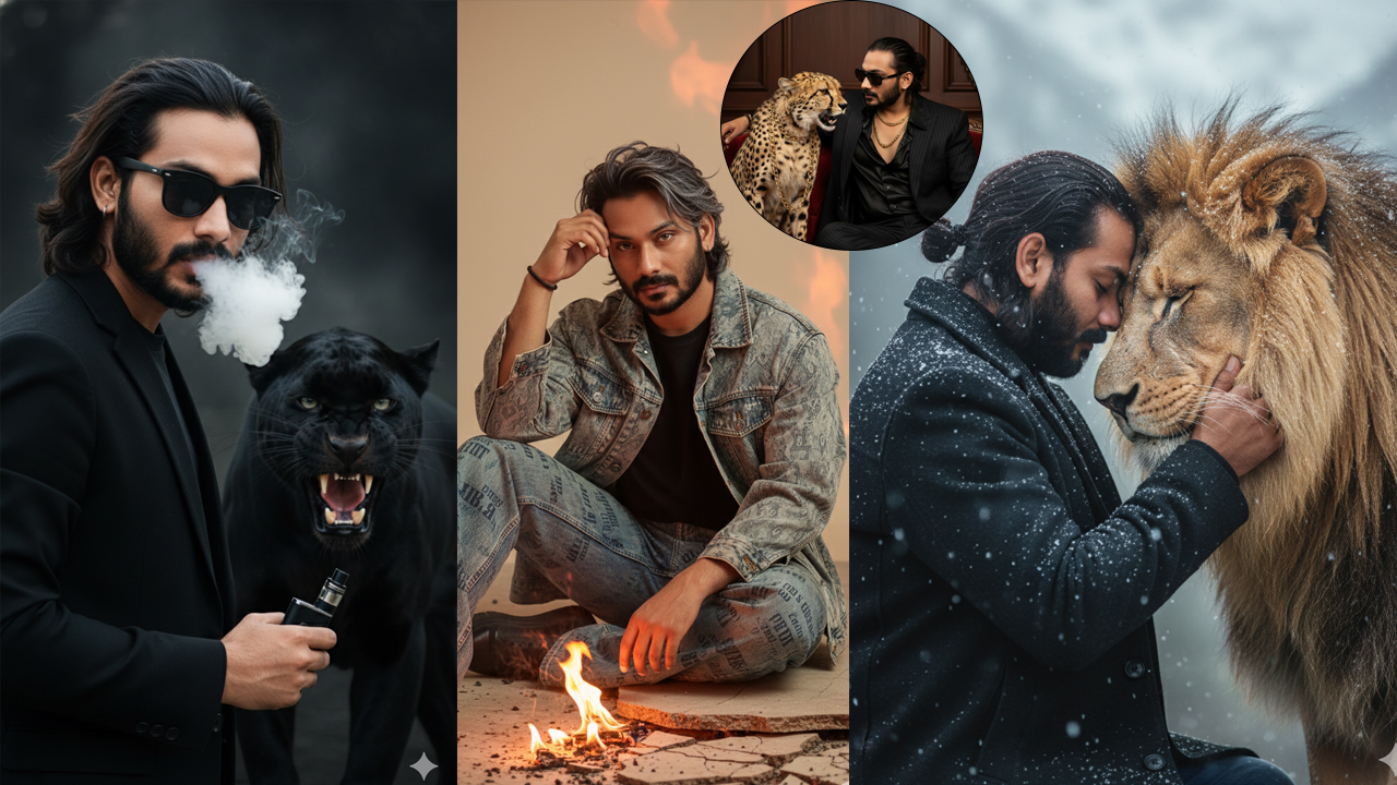 Man Portrait With Panther And Lion’s Prompts 2026 (Note: You can ask Gemini to Change…